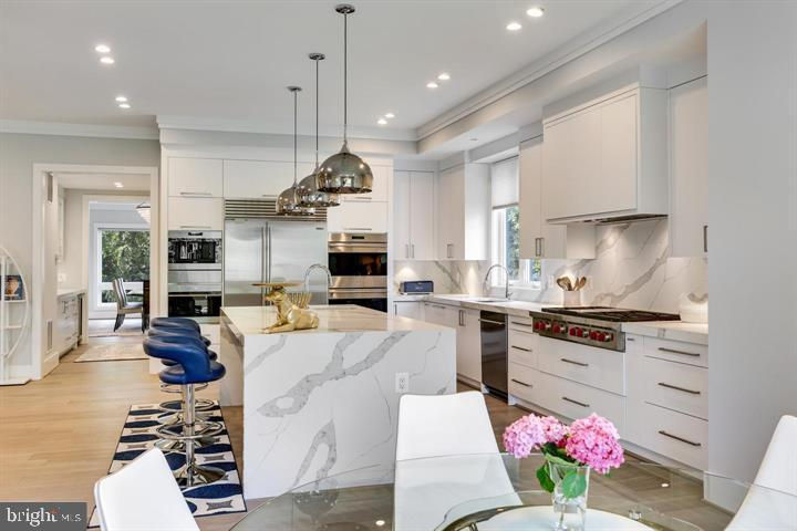 Welcome to 9604 Pembroke Place in Vienna, VA! This stunning property offers a modern and luxurious living experience. The main house boast 5 bedrooms, 5 full bathrooms and 2 half bathrooms , an elevator in addition to a separate fully loaded 1 bedroom apartment-like guest suite with living room, and spacious kitchen. The house was built in 2020, ensuring that you will enjoy the latest in design and construction. The property boasts a generous living space of approximately 9700 square feet, providing ample room for entertaining friends and family. The spacious bedrooms offer a comfortable retreat, and the bathrooms are thoughtfully designed with high-end fixtures. The home features 10-foot ceilings on the main level and 9-foot ceilings on both the upper and lower levels, with numerous windows flooding the spaces with natural light. The chef's kitchen is equipped with high-end appliances, including Wolf double ovens, a microwave, a 48" gas cooktop with 6 burners and a griddle, a Sub-Zero refrigerator, and a Wolf built-in coffee system, making it a culinary enthusiast's dream. The kitchen also features an 8-foot-long island with a waterfall quartz counter. In addition to the main house, the property features two attached —providing space for 6 cars. Beautiful outdoor living spaces further enhance the home's allure, providing the perfect setting for relaxation and entertainment. Located in the desirable locality of Vienna, this home offers convenience, accessibility to Tysons and ensures you are well-connected to the surrounding area. This property is 10 minutes from Tyson's, Reston, Vienna and Great Falls. Whether you need to commute to work or explore the vibrant neighborhood, everything is within reach. Don't miss the opportunity to make this luxurious dream home your own. Contact us today to schedule a viewing and experience the best in modern living.