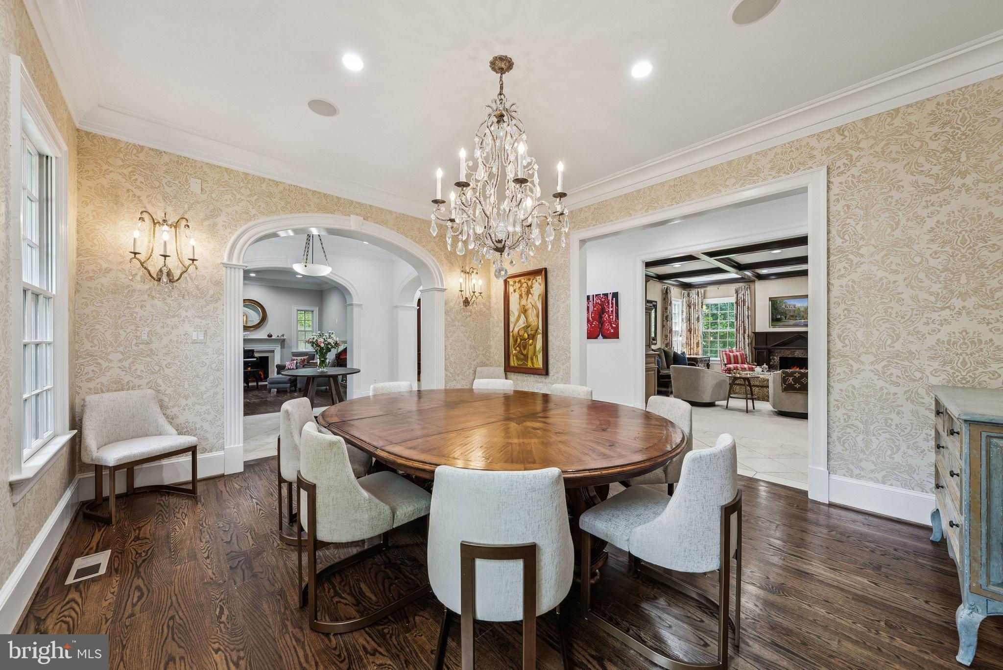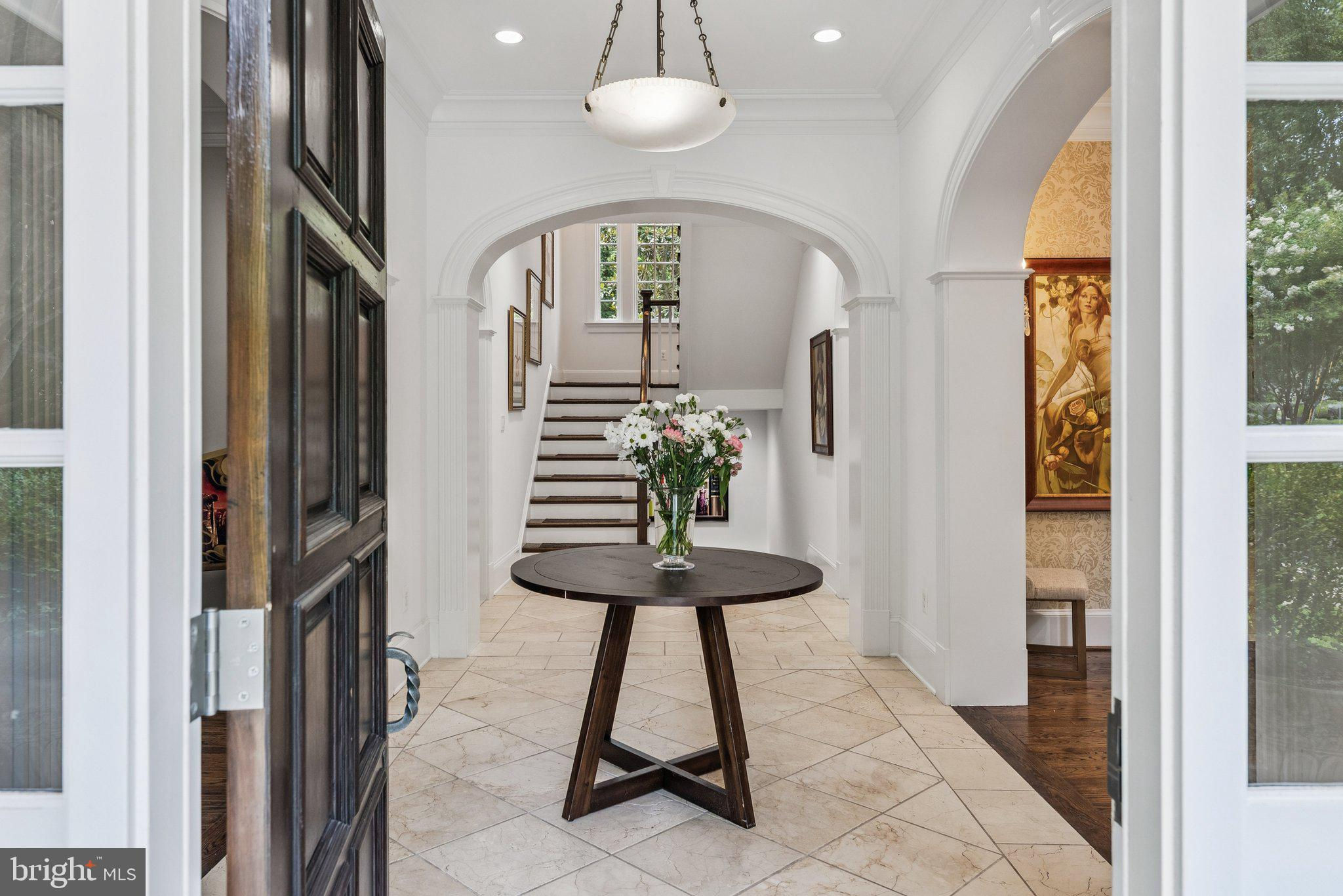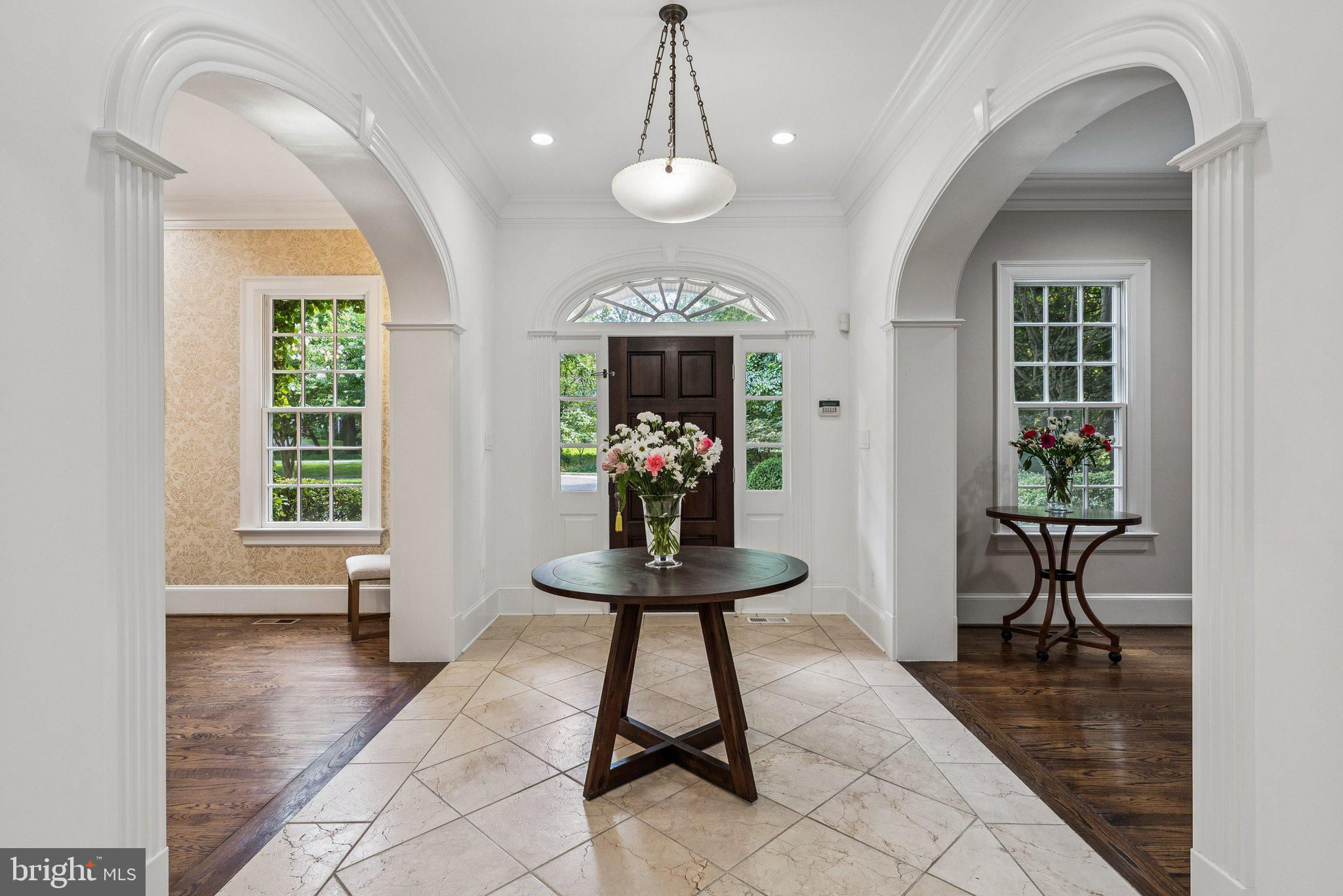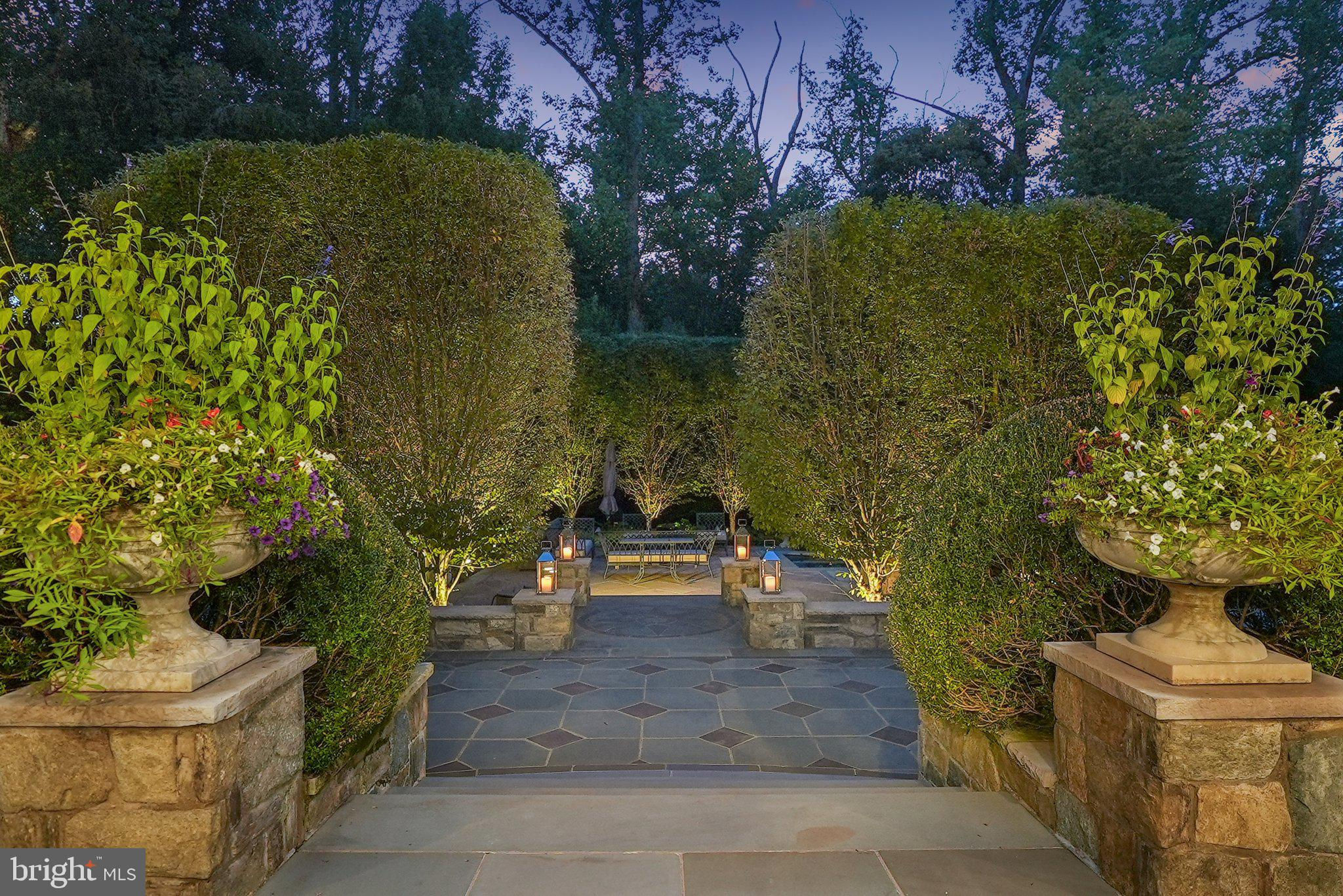 One of Potomac Village’s Finest Estates — A Classic Colonial Manor of Prestige and Timeless Elegance An extraordinary offering in the heart of Potomac Village, this opulent 7-bedroom, 7 full bath, 2 half bath manor represents the pinnacle of architectural refinement and gracious living. Blending the enduring sophistication of classic Colonial design with bespoke modern luxuries, it stands as one of the most distinguished estates to come to market in recent years. Approached by a sweeping circular drive, the home’s symmetrical stone façade, dormer windows, and stately pediment entry create a commanding sense of arrival. Inside, over 6,000 square feet of exquisitely appointed living space is designed for both grand-scale entertaining and intimate daily life. Sunlit formal rooms feature bespoke millwork, gleaming hardwood floors, and expansive windows framing the estate’s manicured grounds. A gracious living room offers a refined setting for gatherings, while the formal dining room, crowned with a romantic glass chandelier, sets the stage for unforgettable evenings. The handsome library/home office is richly appointed with exquisite custom wood built-ins, creating a distinguished space for work or quiet retreat. The chef’s kitchen, equipped with professional-grade appliances and refined finishes, flows effortlessly into the expansive family room, each opening to the home’s outdoor living areas. Upstairs, the primary suite is a private sanctuary with a spa-inspired bath and serene views, while additional en suite bedrooms provide comfort and seclusion for family and guests. The finished lower level offers purpose-designed spaces for recreation, fitness, and media, along with abundant storage. Outdoors, the property unfolds into a parklike landscape reminiscent of a classic English garden—tiered lawns edged with boxwood hedges, meandering stone pathways, and seasonal bursts of hydrangeas, peonies, and climbing roses. Mature oaks and flowering dogwoods provide a natural canopy, while ornamental cherry trees, tulip magnolias, and curated perennial borders add a painterly quality to the grounds. Multiple private garden rooms and sun-dappled terraces are thoughtfully positioned for morning coffee, afternoon gatherings, or twilight entertaining. At the heart of this pastoral setting lies a spectacular infinity-edge pool with a cascading waterfall, its reflective surface blending into the horizon and offering a tranquil focal point for the estate’s lush surroundings. For the collector, the five-car garage offers exceptional space for prized automobiles, additional storage, or a workshop. This rare sanctuary, with its Washingtonian-worthy botanical artistry, is just moments from Potomac Village, Bethesda and minutes from top-tier schools, fine dining, and major commuter routes. A true estate of distinction, this residence embodies prestige, architectural heritage, and an unrivaled standard of livability.